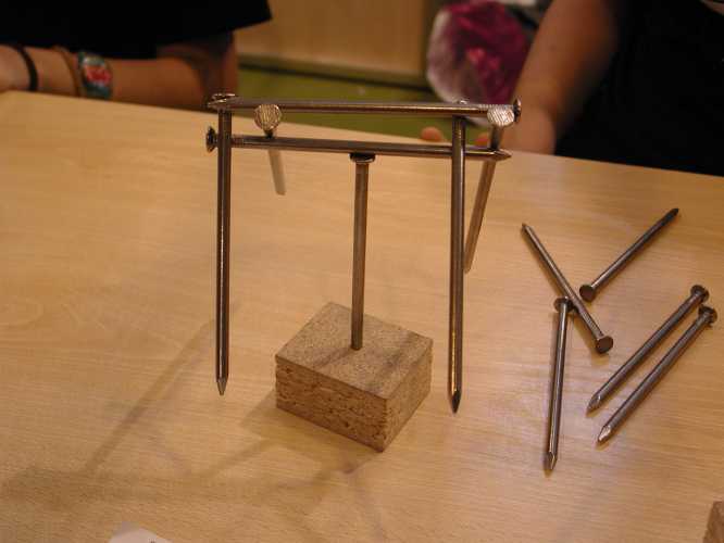 metros, una bola de acero y una pluma. Al girar el tubo se observaba cómo la